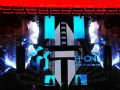 舞台机械间的镶嵌式屏幕、“H”造型的环绕背景屏、顶部和侧面充满机械感的屏幕矩阵、百叶窗式视频墙动感变换.....在酒吧主厅共同打造错落的屏幕“布阵”,全覆盖透视屏高清视觉结合顶级灯光舞美,形成了别具一格的空间环境。