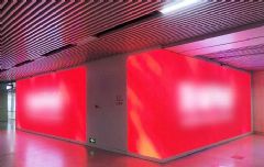 在长沙五一广场地铁站通道设计阶段,为了更好地展示媒体内容,带来视觉上的冲击,抓住来往乘客眼球,设计团队采用了条形屏,不仅能带来良好的视觉延展性,让通道更加深邃、层高更加空阔,还可以随意拼接成各种不规则形状来显示一些极具创意的内容,能第一时间吸引乘客的眼球从而达到更好地宣传效果,同时也能使空间更为立体,增强层次感,带来潮流酷炫的场景视觉效果,打造当地新的人气打卡地标。