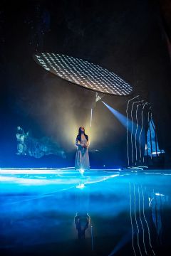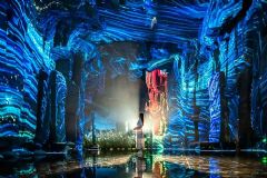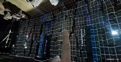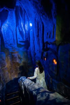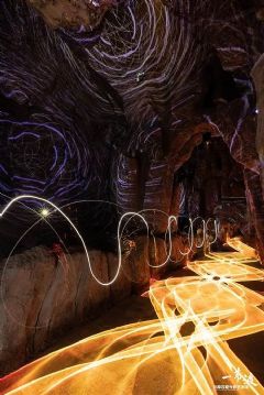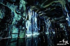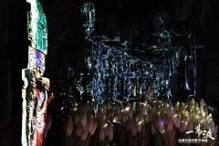 在这个原本凹凸不平的洞壁上,想要投射出平整的画面并不容易,错落的石块,让内容无法完美融合,需要不断进行测试调试,直至找到投影图像的最佳显示区域。同时顶部无法寻求最佳显示区域的情况下,只能采取洞壁结合纱幕,打造平整成像面。经过反反复复多次试验,索诺克完美完成了不破坏洞壁整体效果,又保证全沉浸式效果的任务。