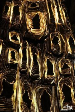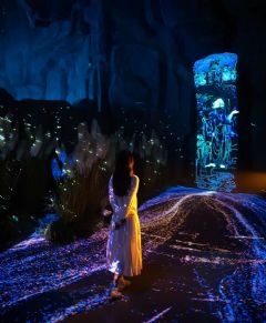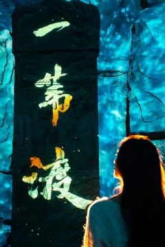 繁花似锦的线条通过索诺克光影投射在石壁上,每一个符号花纹,都代表了一段故事、一个期望、一个智慧的诞生,此处通过光影呈现效果,增强游客对于知识和想象力的探索。