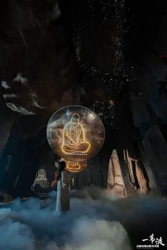 索诺克投影通过挑战复杂的安装环境,凹凸不平的成像面等问题,惊艳展现了达摩故事以及东方美学色彩。以民族品牌的科技美学结合中国禅文化的深度交融,通过大量凹凸起伏的石块投射完整画面,使视效画面和石窟环境深度融合,结合3D光影和视觉动效,让每一幅影片画面华丽生动,为游客观众带来一场沉浸式视听盛宴。近30米的穹顶使洞内的音场宛如一座音乐厅,可谓自然与高科技的巧妙结合。在达摩形象的诠释中,有别于传统达摩,保留适当美型、趣味和儒雅洒脱,构建更符合年轻受众的审美需求的形象。