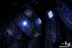此处通过索诺克激光投影机SNP-LC74DU配合短变焦镜头,背投呈现。在洞壁这种不规则空间内,投影机充分发挥其灵活性。不管是正投、背投、侧投,还是720度安装,都可以自由选择。圆镜投影的是达摩故事,与类似于万花筒面壁交互空间及烟雾激光线条配合,向游客呈现出一个艺术交互体验空间。