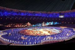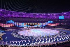 开幕式在杭州奥体中心“大莲花”场馆举行,以“潮起亚细亚”为主题,通过舞台布景和多媒体技术的运用,融入中国传统文化与意象,彰显中国江南美学的独特吸引力与感染力;通过“潮起亚细亚”展现新时代中国与亚洲、与世界的文化交融。